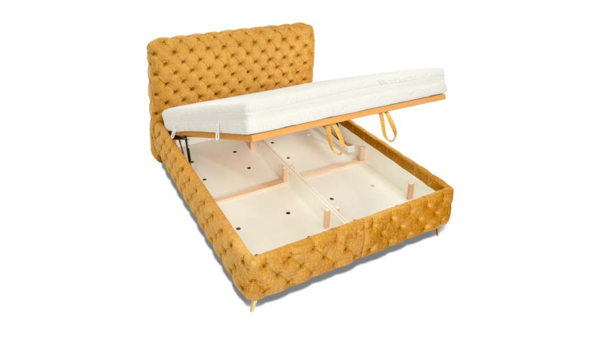 A praktikus funkciókról sem kell lemondanod, mivel a Buckingham ágy egy terebélyes, szemből nyíló ágyneműtartóval készül. A matracot egy szellőzőnyílásokkal ellátott duplungolt lap tartja, ami a rugós matracokhoz tökéletes választás.