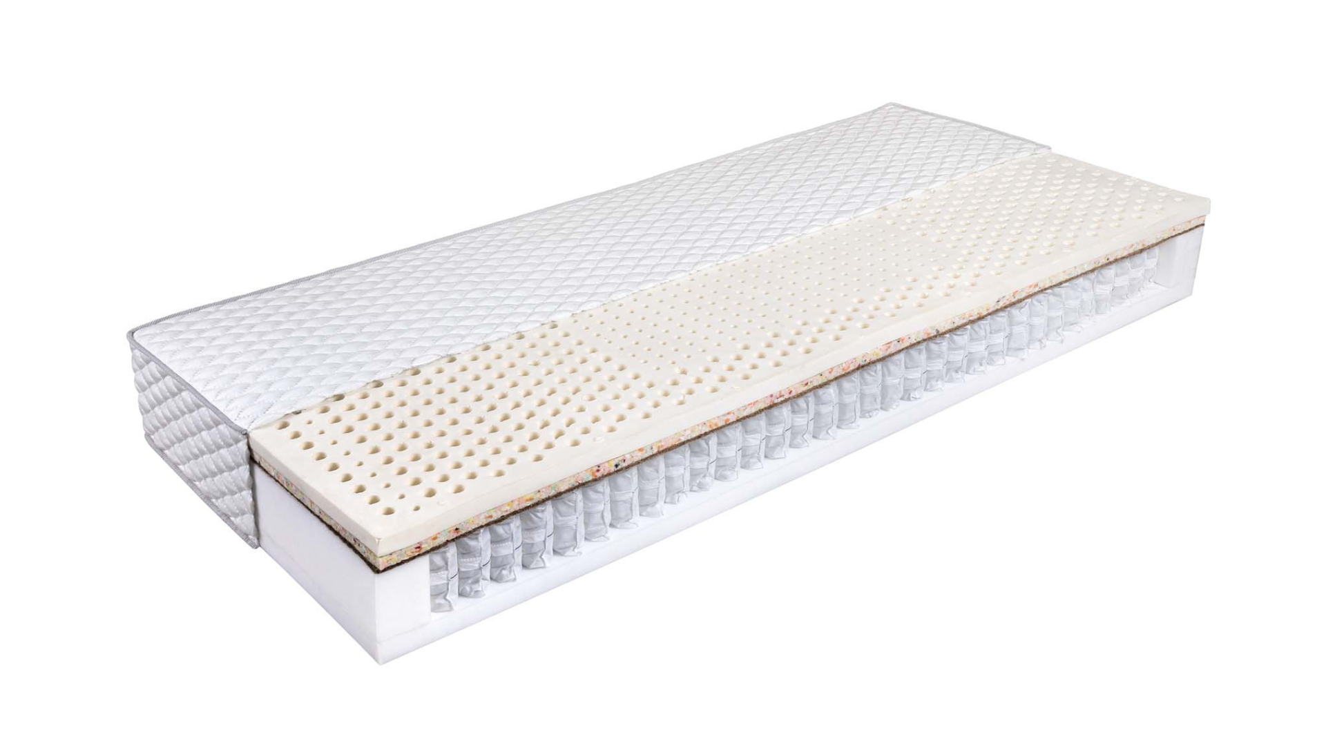 Kemény összkomfortú táskarugós matrac, latex fekvőfelülettel és antibakteriális, nedvességszabályozó huzattal.