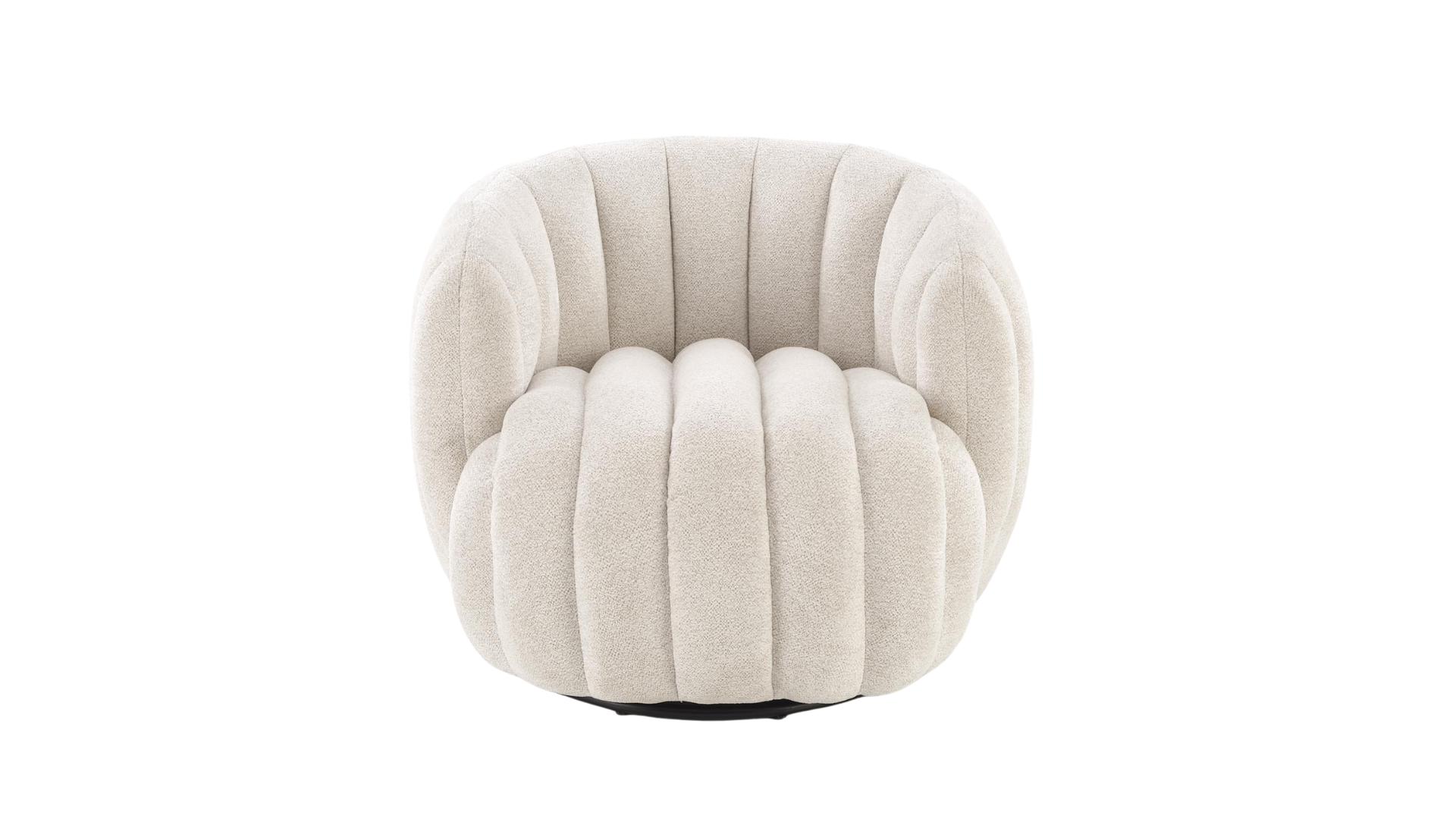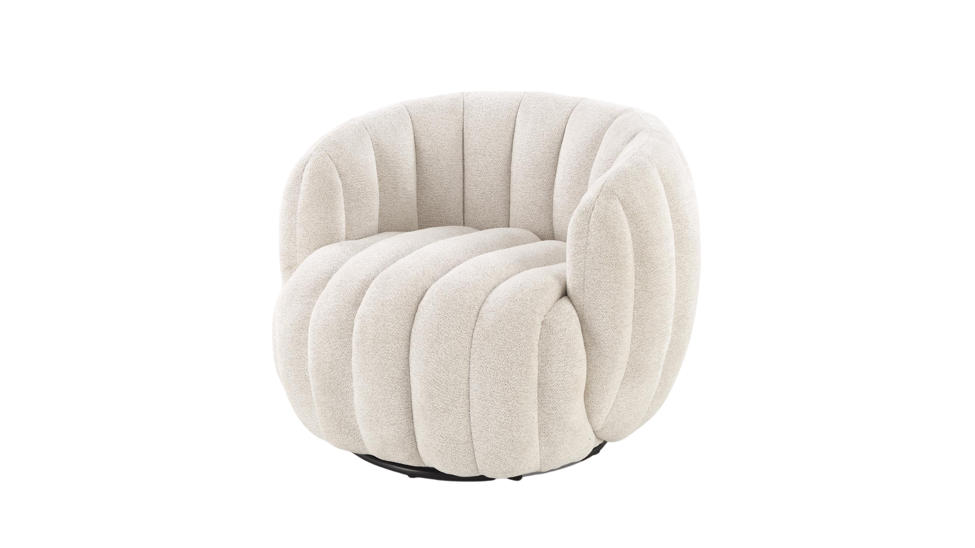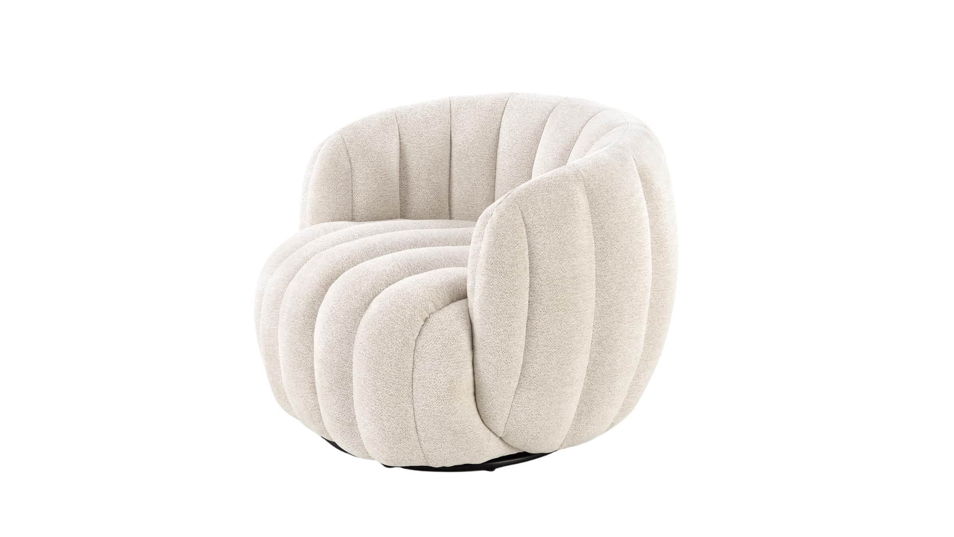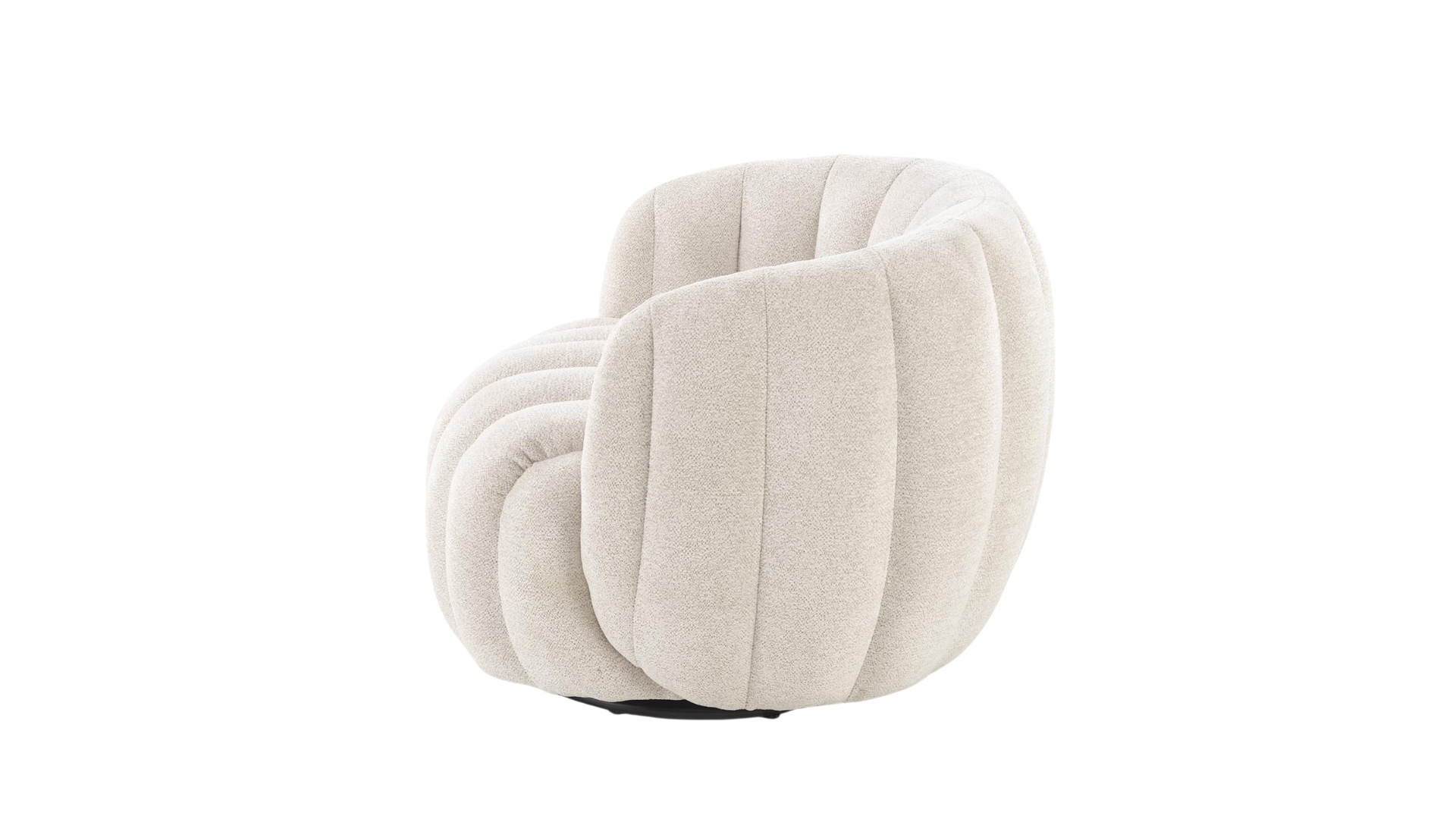 A Coco fotel lágy íveivel, puha, krémszínű szövetével és elegáns, barátságos formavilágával azonnal meleg hangulatot teremt a térben. A rejtett 360°-os forgómechanika diszkréten támogatja a praktikus használatot, anélkül hogy a design rovására menne. Tökéletes választás nappaliba, hálóba vagy stílusos vendégváró térbe, hiszen a Coco fotel minden környezetben kifinomult ízlésről árulkodik. Ha egy igazán különleges, mégis univerzálisan használható bútordarabra vágysz, ne keress tovább.