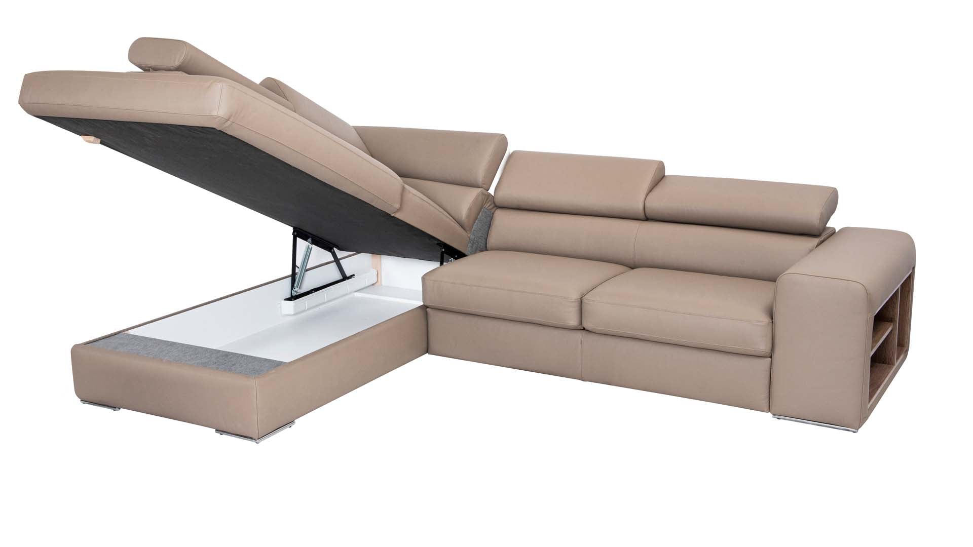A London ottomán a prémium bútorok tökéletes mintája. Kifinomult megjelenését a valódi marhabőr bevonat teszi még elegánsabbá. A magas minőségű marhabőrökkel párosítva a a kanapé kívül és belül is garantáltan tartós lesz évtizedeken keresztül. Ráadásul a praktikus funkciókról sem kell lemondanod, mint az ágyneműtartó vagy a kárpitozott vendégágy. A London ottomán különlegessége, hogy karfájába egy polcszerkezetet is beépítettünk, így könnyedén a saját ízlésedre szabhatod a megjelenését.