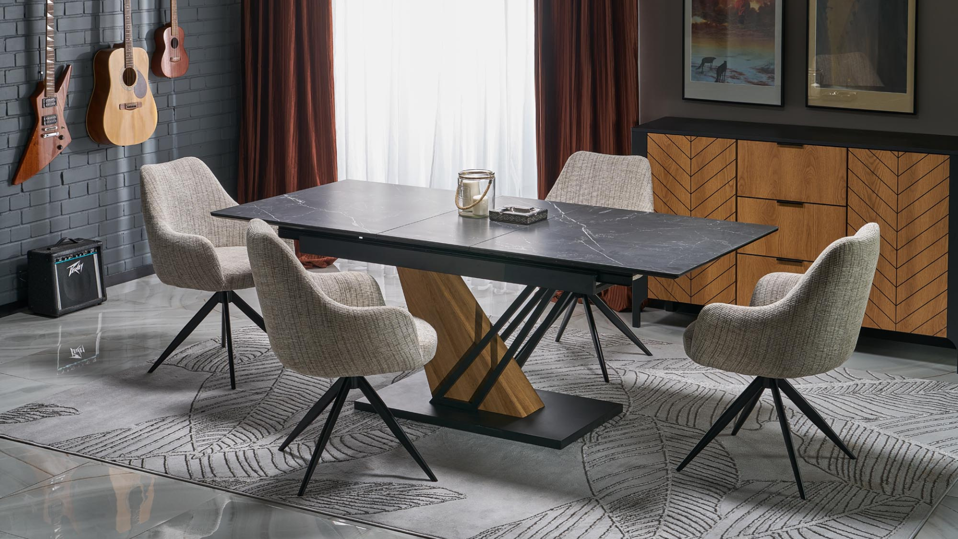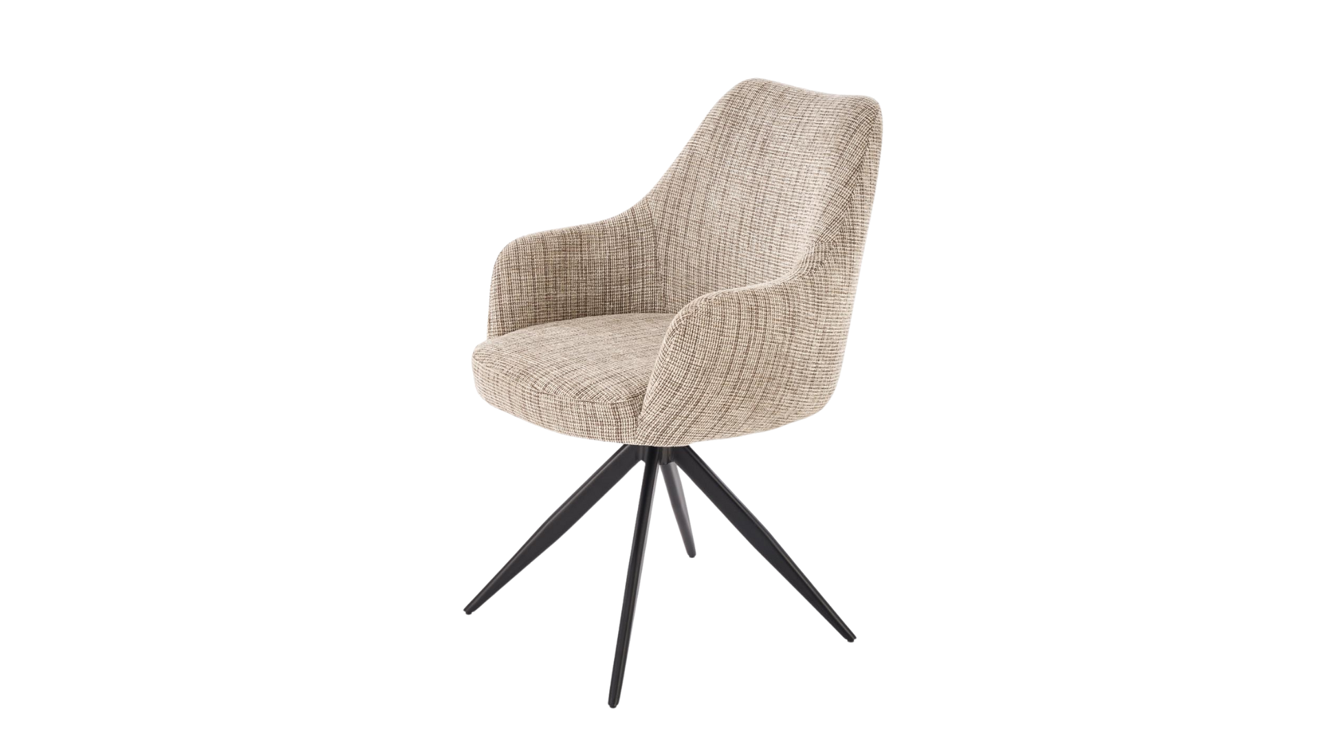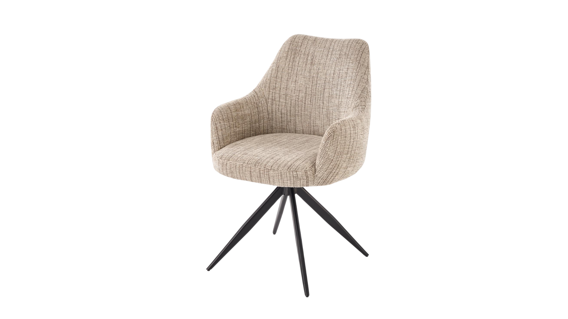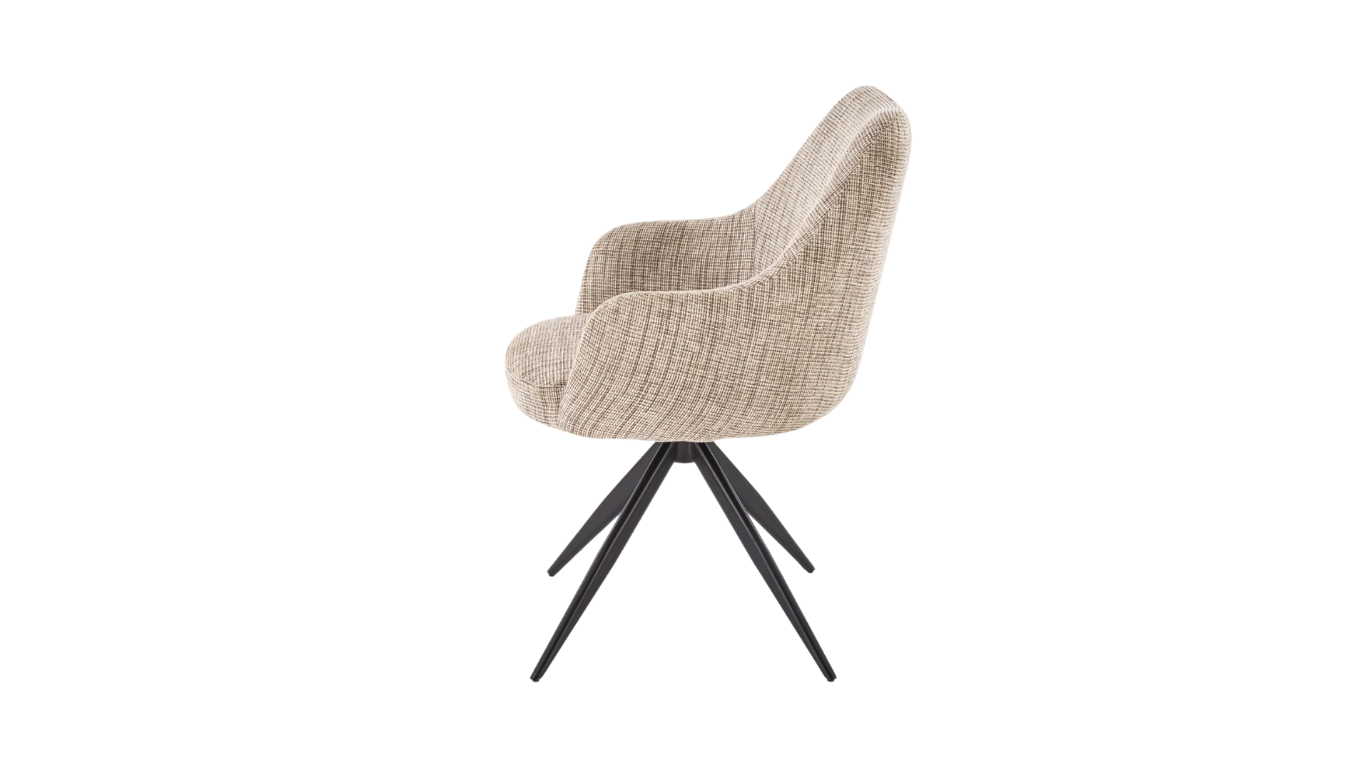 A Torvi szék modern formatervezésével és forgatható funkciójával praktikus és kényelmes választás az étkezőbe vagy a dolgozószobába. Stabil, porszórt acéllábai biztosítják a tartósságot és a stabil ülést. Az ergonomikus kialakítás és a puha, mégis strapabíró szövetkárpit gondoskodik a kényelmes használatról, akár hosszabb időn át is. A bézs és szürke árnyalatok letisztult, elegáns megjelenést kölcsönöznek, így könnyen illeszkedik különféle enteriőrökbe. A Torvi egyszerre praktikus, tartós és modern megoldás minden otthonba.